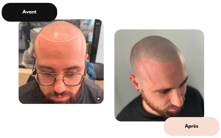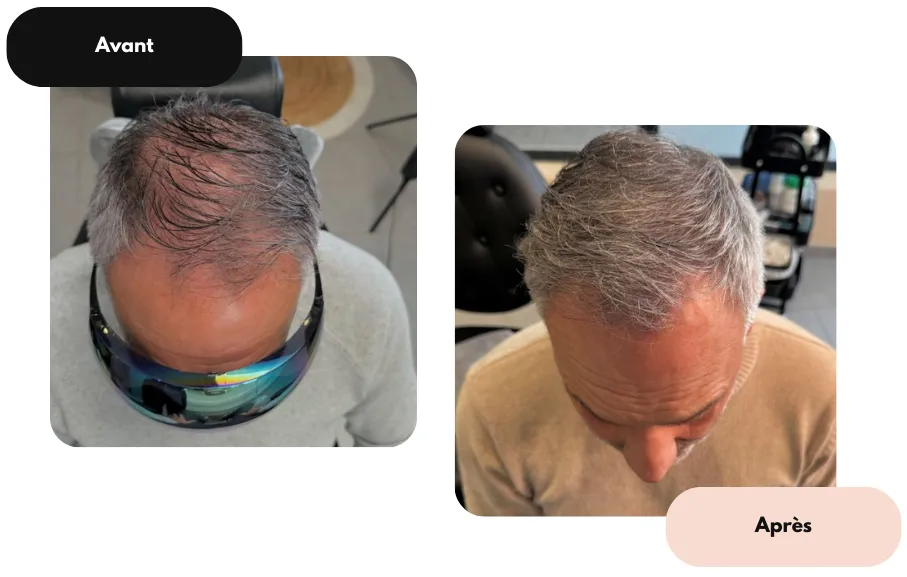 "Julien, 31 ans — Complexé par sa calvitie depuis ses 25 ans, il a opté pour la tricopigmentation. Après quelques séances, il a retrouvé une apparence naturelle et se sent beaucoup moins complexé."